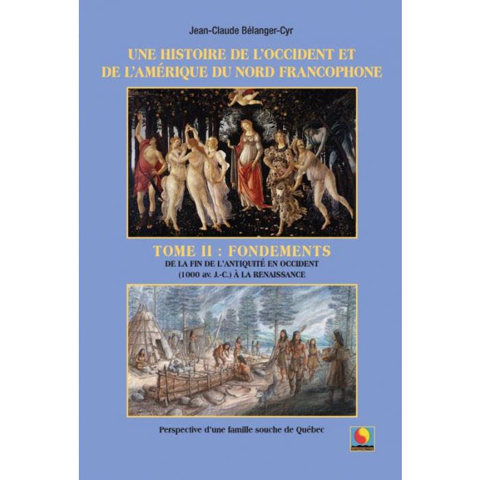Ce second tome des fondements poursuit l’examen sommaire de l’histoire de l’Occident de la fin de l’Antiquité (1000 av. J.-C.) à la Renaissance tant sur le pourtour de la Méditerranée qu’en Europe, de même qu’en Amérique du Nord durant cette période de sa préhistoire. Il a pour but de rappeler les étapes clefs franchies par les peuples desquels sont issus nos lointains ancêtres à la base de l’identité de l’Amérique du Nord Francophone (ANF).